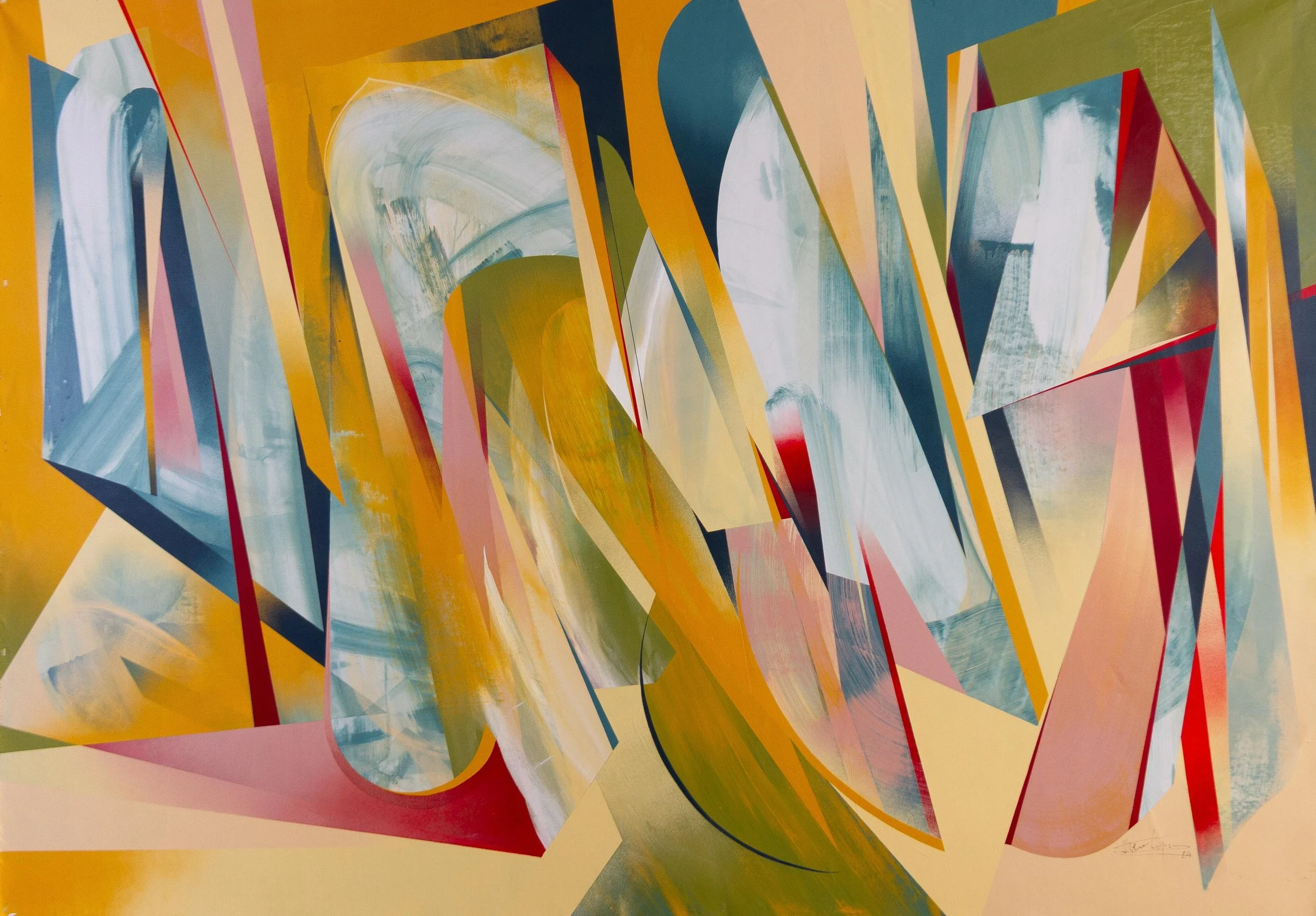 Théo Lopez bascule dans l’abstrait, sa recherche est aujourd’hui guidée par un besoin de revenir aux fondements, à l’essence même de sa ligne. À l’instar des Constructivistes Russes, de l’expressionnisme allemand et en particulier le «Blaue Reiter» de Kandinsky et Marc. Il élabore une poésie dans le travail de la matière, de la ligne et de la couleur.